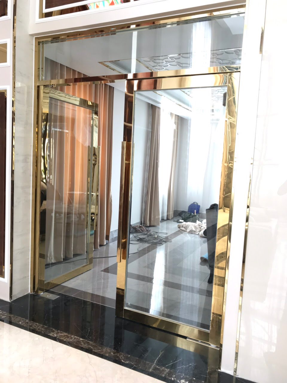 CỬA KÍNH CƯỜNG LỰC KHUNG INOX BÓNG,MẠ
